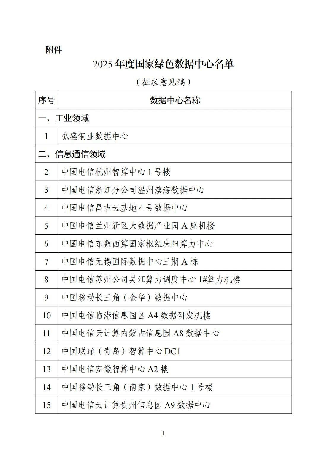 10月28日,工信部節(jié)能與綜合利用司公示2025年度國家綠色數(shù)據(jù)中心名單。根據(jù)《工業(yè)和信息化部辦公廳國家發(fā)展改革委辦公廳商務(wù)部辦公廳金融監(jiān)管總局辦公廳國管局辦公室國家能源局綜合司關(guān)于組織開展2025年度國家綠色數(shù)據(jù)中心推薦工作的通知》(工信廳聯(lián)節(jié)函〔2025〕279號),現(xiàn)將2025年度國家綠色數(shù)據(jù)中心名單予以公示,公示時間為2025年10月28日至11月3日。